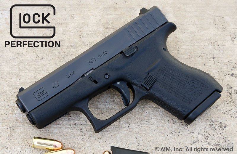 The new GLOCK 42, in .380 AUTO, is a slimline subcompact pistol able to withstand the rigors of routine training. The G42 is the smallest pistol GLOCK has ever introduced, making it ideal for pocket carry and shooters with smaller hands. Length: 151 mm/ 5.94 in. Width: 24 mm/ 0.94 Height: 105 mm/ 4.13 in. Barrel Length: 82.5/3.25 in. Loaded Weight: -490 g/ -17.29 oz. Unloaded: 390 g/ 13.76 oz.